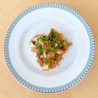 - 3 お皿に盛り付け、トッピングを飾って完成です。