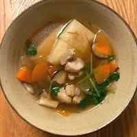 昆布と鶏肉の出汁で美味しかったです。顆粒出汁よりも奥行きのある味。