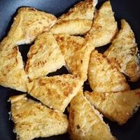 - 5 中火に熱したフライパンにサラダ油をひき4を入れ、両面焼き目がつくまで焼いたら料理酒を加え蓋をし、3分程蒸し焼きにします。