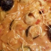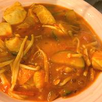 - 6 ズッキーニがやわらかくなったら、ココナッツミルク、(A)を加えて中火でひと煮立ちさせ、火から下ろします。