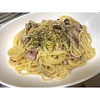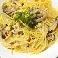 玉ねぎやベーコンなどもあえて入れない究極シンプルパスタおいしくできました。