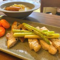豚ロースとパプリカを主役に、レモンの爽やかな酸味と香りが食欲をそそります。ハーブソルトの風味が効いた上品な味わいで、さっぱりと食べられます。アスパラやセロリ、スナップエンドウなど、お好みの野菜を組み合わせることで、彩り豊かな一皿に仕上がります。バターで炒めたり、フレッシュバジルをのせたりとアレンジも楽しめます。暑い季節にぴったりの万能レシピです。