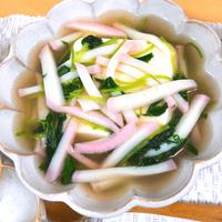 - 3 かまぼこを細切りにして、三つ葉は2cm幅に切ります。