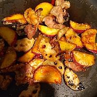 - 3 同じフライパンで1の豚バラ肉を揚げ焼きし、色が変わってきたら余分な油をキッチンペーパーで拭き取り、2、(A)を加えて炒めます。