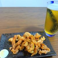 - 準備 鶏皮は一口大に切っておきます。みりんは、加熱を行いアルコールを飛ばし粗熱をとっておきます。