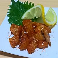 他の方のレポを参考に、鶏皮150gに対し調味料は規定(100g分)の半量弱で作りました。ちょうどよい配分だったと思います。パリパリに焼かなかったからか、少し冷めたらくっついてしまいました。手軽でおいしいので、リピ確実です!