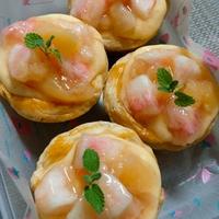 もものカスタードパイのレシピのご紹介です。電子レンジで簡単に作れるカスタードなので、とても手軽に作れますよ。クラッシュしたゼリーを乗せるだけで、キラキラとしたおしゃれなスイーツになりますので是非お試しください。