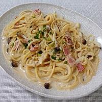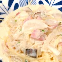 やはりきのこパスタにベーコンはかかせないですよね!豆乳だからHealthyなのもよきです