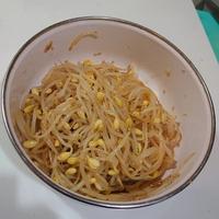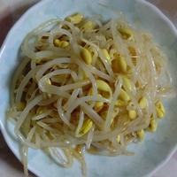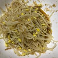 - 1 耐熱ボウルに豆もやしを入れ、ラップをし600Wのレンジで3分加熱します。