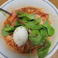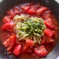 トマトがたっぷり入った、暑い日にピッタリのさっぱりラーメンのご紹介です。程よい酸味でどんどんお箸が進む一品です。トマトの赤色とジェノベーゼソースの緑色のコントラストが目にも美味しいです。この機会に是非作ってみて下さいね。