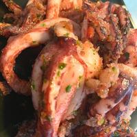 青のりの風味が効いたイカゲソ唐揚げのご紹介です。居酒屋などでも定番のイカゲソの唐揚げに、青のりと塩こしょうをまぶし、のり塩風味に仕上げました。しっかりとした味付けなので、お酒のおつまみにもぴったりですよ。ぜひお試しくださいね。