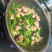 砂肝はスライスにし火の通りを時短。鶏ガラスープの素を少し追加。コリコリ食感で美味しい。