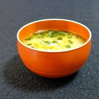 みそ汁とニラたまを合わせたスープです。豆板醤のピリ辛さがくせになります。みそを加えることにより味わいがマイルドになり飲みやすくなります。普段のみそ汁にアレンジを効かせたい方におすすめです。是非、お試しください。