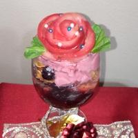 少しアレンジしてパフェにしました。ワインゼリーもお砂糖が入っているせいか食べやすく上品な味わいで、白ワインゼリーを崩して入れるところがお洒落ですね。