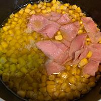 - 4 コーン、2、鷹の爪輪切り、塩こしょうを入れ混ぜ、煮立ったら火から下ろします。