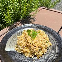 - 6 ごはんがパラパラになったら火から下ろし、お皿に盛り付け、糸唐辛子をのせて完成です。