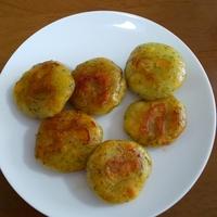 青のりの代わりに明太子を入れました!水分があまりなかったので、めんつゆを少し入れて、焼くときも少し足しました♩