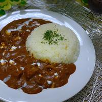 - 7 お皿にごはんをよそい、6をかけ、パセリ、生クリームをかけて完成です。