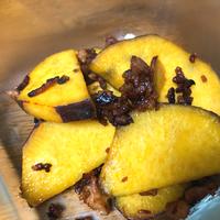 - 4 さつまいもに火が通ったら中火のまま、焼肉のタレを入れ、炒め合わせます。