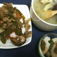 余っていた椎茸とにんじんも入れて野菜たっぷりにして、ご飯の上にどーんとかけてみました。