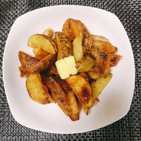 じゃがいも約半量(レンチン長め)・(A)2/3・油&バター半分程。バターなくても十分美味しいけど少しあるだけでさらに美味しい。バターは最後にフライパンで絡めた方が全体に行き渡っていいかな✏️