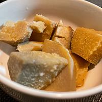 セレベスは面取りして見た目を美しくしました。かつおぶしで出汁をとって、酒、砂糖、塩、味の素で味付けをしました。甘くて美味しいセレベスの煮物が出来上がりました。お正月に家族と食べます❇️