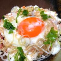 - 4 器にごはんをよそい、かつお節、3、1、卵黄をのせ、小ねぎを散らし、2を回しかけたら出来上がりです。
