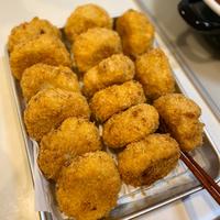 みじん切りにした玉ねぎ4分の1をバターで炒めて、タネにコンソメと塩胡椒で味付けして揚げました
