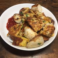 ネギ・ツナ缶・チーズバター大さじ1・塩胡椒少し・小麦粉・ケチャップ・卵・サラダ油