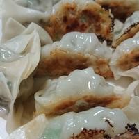 - 2 ボウルに1と調味料を入れてよく混ぜます。餃子の皮に餡をのせ包みます。
