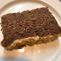 クランブルの代わりにクルミを使って、上にもバナナをのせてみました。このレシピとは全然別のケーキみたいになってしまいましたが美味しくできました!
