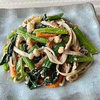 ごはんに合う和え物の定番が、えのきの食感で新しい一品に。すりごまをたっぷり使うことで香ばしさが増し、野菜の自然な甘みを引き立てます。ほうれん草はしっかり水気を絞るのがポイント。シンプルな味付けながら、だしや醤油を加えて濃さを調整できます。人参を加えると彩りも良く、お弁当のおかずにもぴったり。冷凍野菜でも手軽に作れる優しい味わいです。