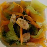 - 1 チンゲン菜は根元を切り落とし、3cm幅に切ります。