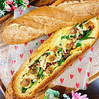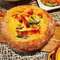 フランスパンにキッシュ液がジワッと染み込み、外はカリッと中はしっとりふわふわの絶妙な食感に仕上がります。ベーコンやアスパラ、ほうれん草、エビなど好みの具材とチーズをたっぷり使って具沢山に作れるのが魅力です。キッシュ液は多めですがゆっくり注げば上手く染み込み、オーブンで焼くだけの簡単レシピ。おもてなしにもぴったりの見た目も華やかな一品です。