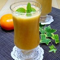 よく熟れた柿とりんごをミキサーにかけてジュースに仕上げました。甘くて濃厚な柿と、ジューシーなりんごは相性抜群です。氷を入れて冷たく冷やしていただいてもおいしいですよ。簡単にできますので、ぜひ試してみてくださいね。