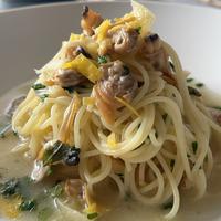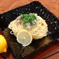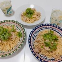 スパゲティはカッペリーニで作りました。鶏肉の代わりにあさりを使用。大葉とレモンの風味が最高の仕上がりに。茹で時間を少し多めにした方があいます。その際にパスタを切らないように注意しましょう。