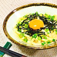 - 2 器に盛り付け、卵黄、小ねぎ、のりをのせ、めんつゆをかけて完成です。