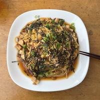 大葉や玉ねぎがなかったので、青ネギで代用。のりのふりかけトッピングしました
