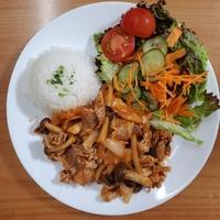 - 5 器にサラダ菜を敷いてごはん、4を盛り付けてパセリを散らして完成です。