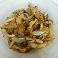 - 1 しめじは石づきを取ってほぐします。玉ねぎは1cm幅のくし形に切ります。