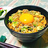 納豆1パックとアボカド半分で作り丼にしました。青唐辛子とゴマと卵黄追加、アボカドは塊が残る程度に軽く潰してます。簡単でとても美味しかったです。