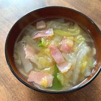 残ってしまいがちなシュウマイの皮を、白菜とベーコンのスープに加え、中華風の味付けで仕上げました。とろとろに煮込んだ白菜と、シュウマイの皮のつるっとした食感がとてもおいしいですよ。作り方も簡単ですので、ぜひ作ってみてくださいね。