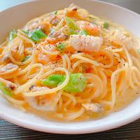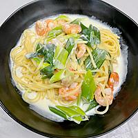 エビとたっぷり長ねぎのクリームスパゲティ レシピ・作り方