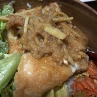 - 5 お皿にキャベツを添え、4を盛り付け、残りのたれをかけて完成です。