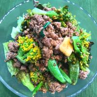 - 4 牛ひき肉に火が通り、全体に味が馴染んだら火からおろし、器に盛り付けて完成です。