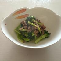 合い挽き肉300g、ブロッコリー150gでつくりました。余分な脂を拭き取ってからマヨネーズを加えて炒めました。