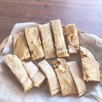きな粉で何か作れないかなぁと探してたらこれに行き着きました~!そこまで甘くもなくほんのりという感じでもっちり美味しく出来ました!牛乳パックで作りましたw大きさピッタリ!