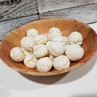 - 3 クッキングシートを敷いた天板に、直径4cmに丸めて並べます。