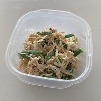切り干し大根はさっぱりした味ですが、旨味がたっぷり詰まっているので、水で戻すだけでおいしいサラダの材料になります。さやいんげんと合わせて、ごまとマヨネーズベースで和えました。あともう一品おかずが欲しいときにいかがでしょうか。