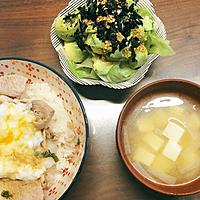 ごはんにたっぷりの刻みねぎと、豚しゃぶ、そしてとろろをかけていただくレシピのご紹介です。とろろをのせることで、ツルンと喉越しも良く、腹持ちもよいですよ。最後にのせた卵黄を絡ませながらお召し上がりください。